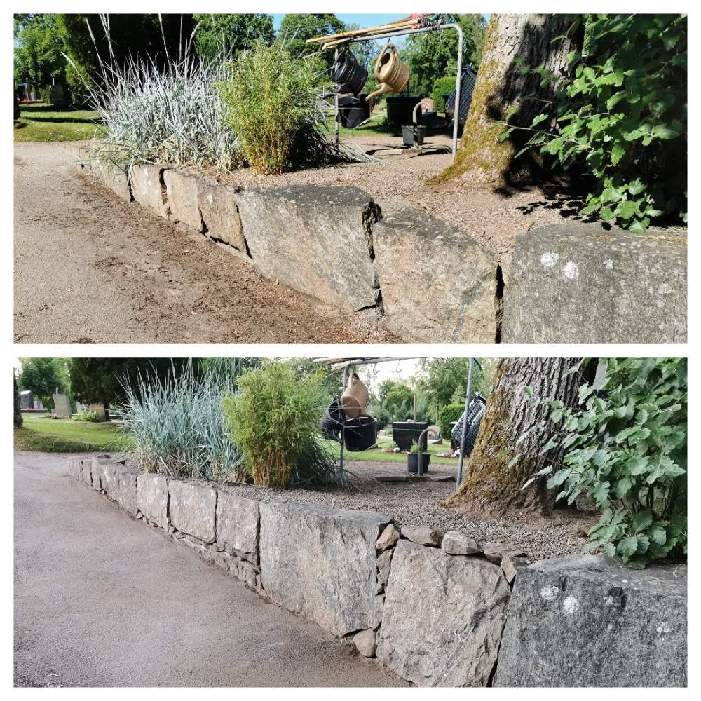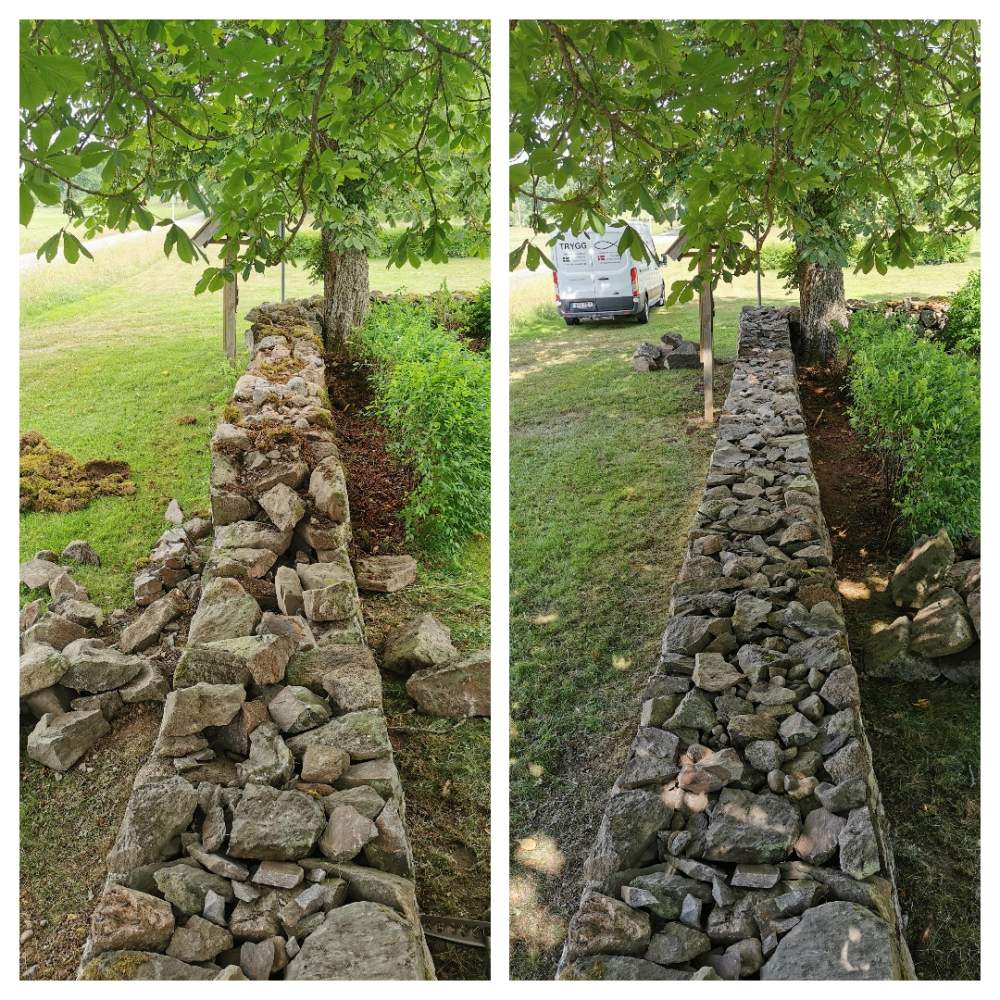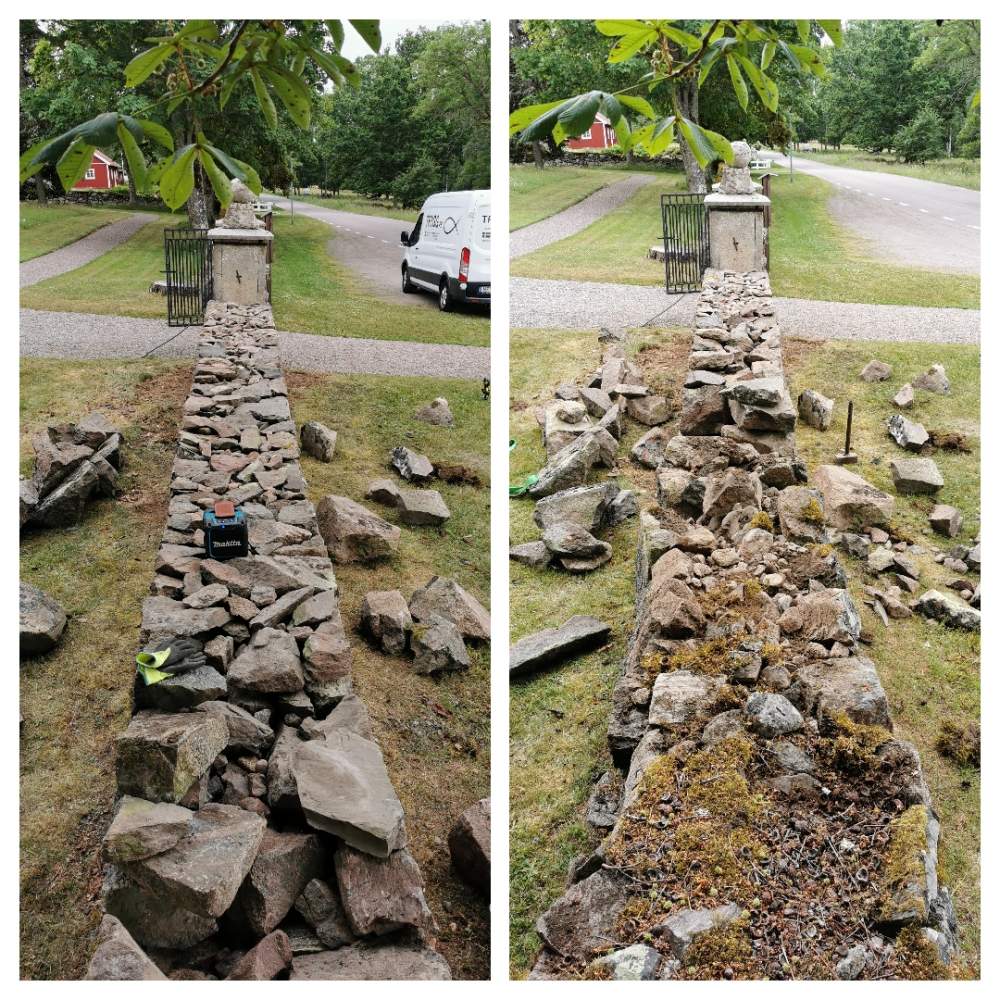 på bruks- og tørrsteinsmurer, og da hjelper vi deg med å reparere muren slik at den blir hel igjen.