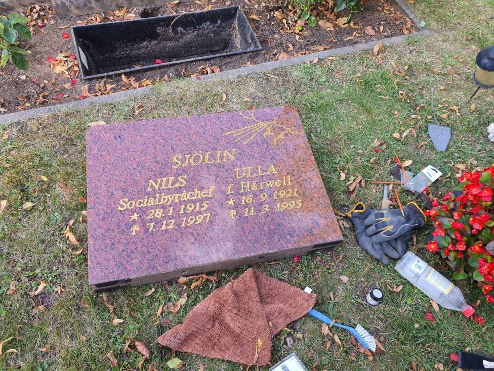 Sikkerhet er viktig på en kirkegård, men for oss er estetikk like viktig, i tillegg er en godt vedlikeholdt gravminne et verdifullt og vakkert minne om det som har vært. Etter flere forespørsler fra våre kunder har vi siden 2016 tilbudt oppussing av tekst, og nå også polering av bokstaver i kobber.